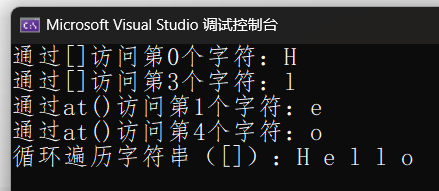 cout << "通过at()访问第4个字符:" << str.at(4) << endl;