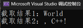 string str9(str8, 7, 5); // 从索引7开始,截取5个字符,str9 = "World"