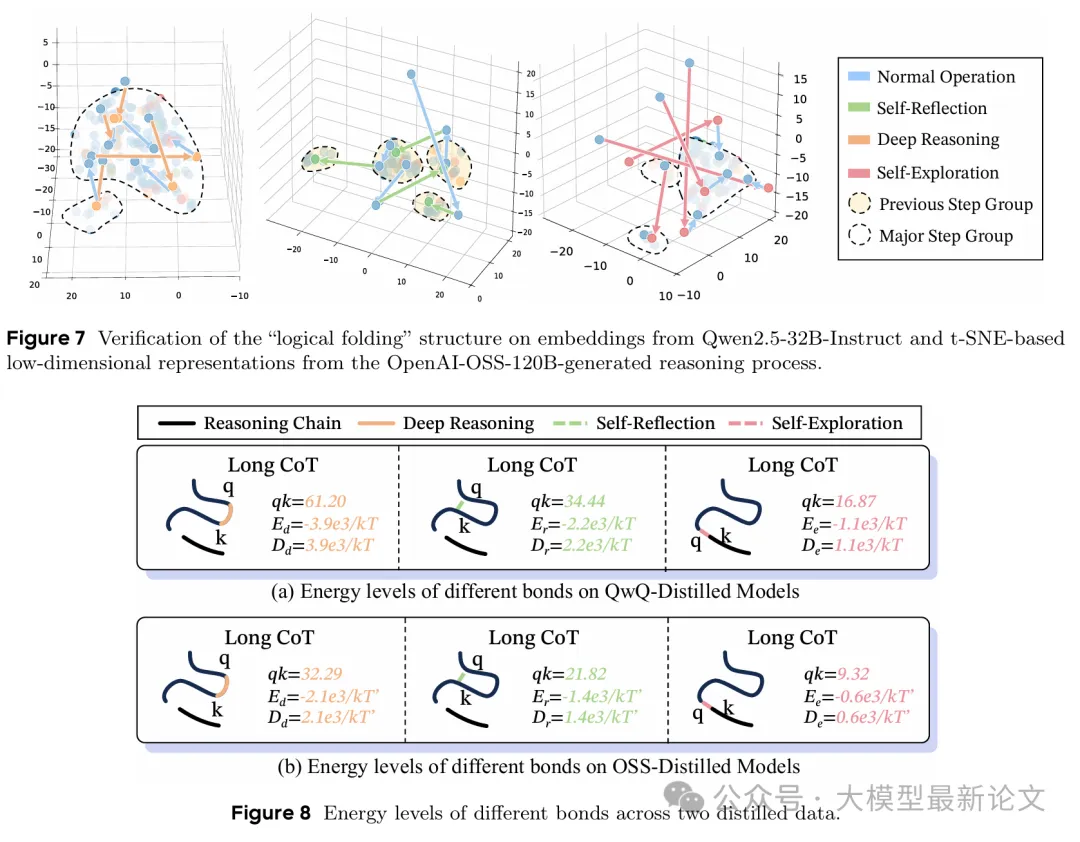 深度推理应表现为紧密簇、高强度;反思应表现为折叠返回;探索应表现为大步距、弱强度