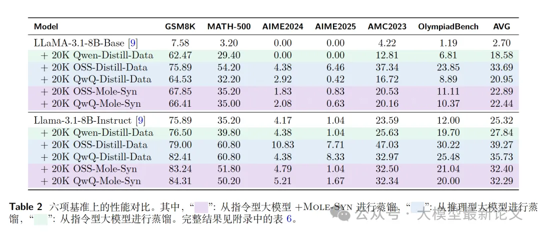 - Mole-Syn 达到直接蒸馏 82-85% 的性能(数据构造成本极小)