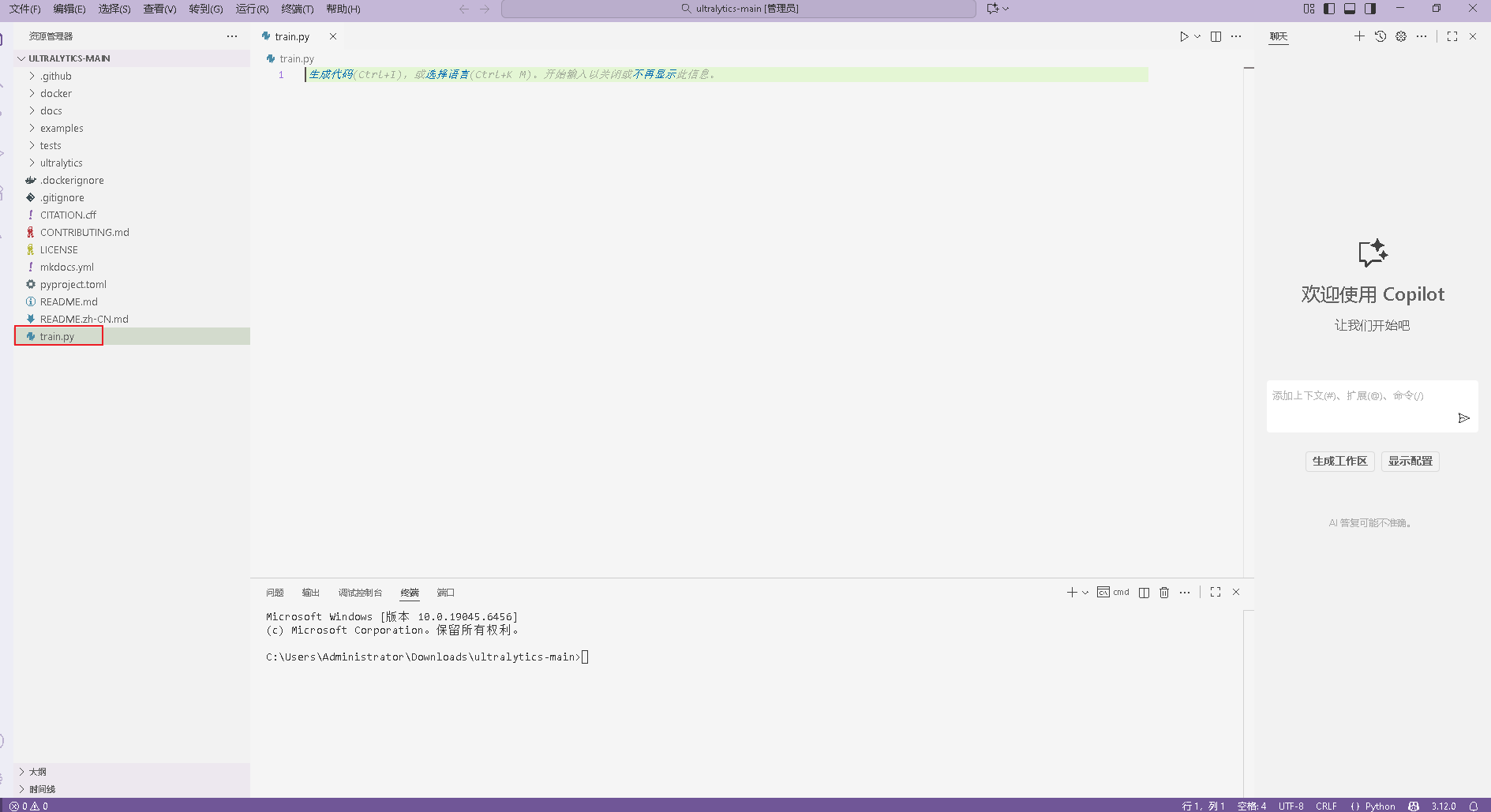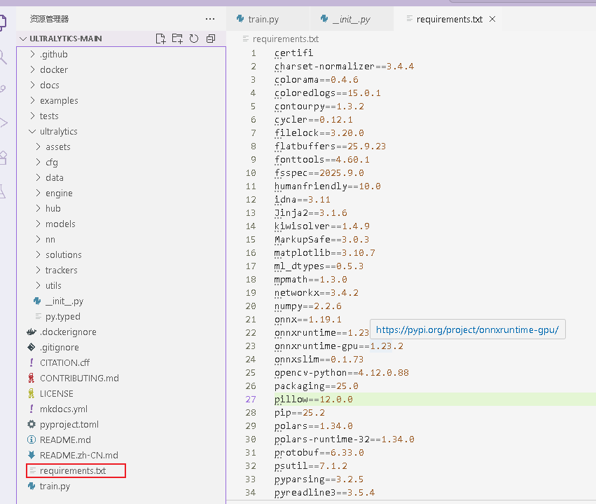 3.使用vscode打开刚才下载的yolo库文件ultralytics-main