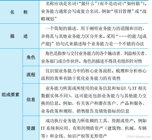 准确无误:不要简单地在描述中重复业务能力的 名称,例如将"项目管理"描述为"管理项目的能力"
