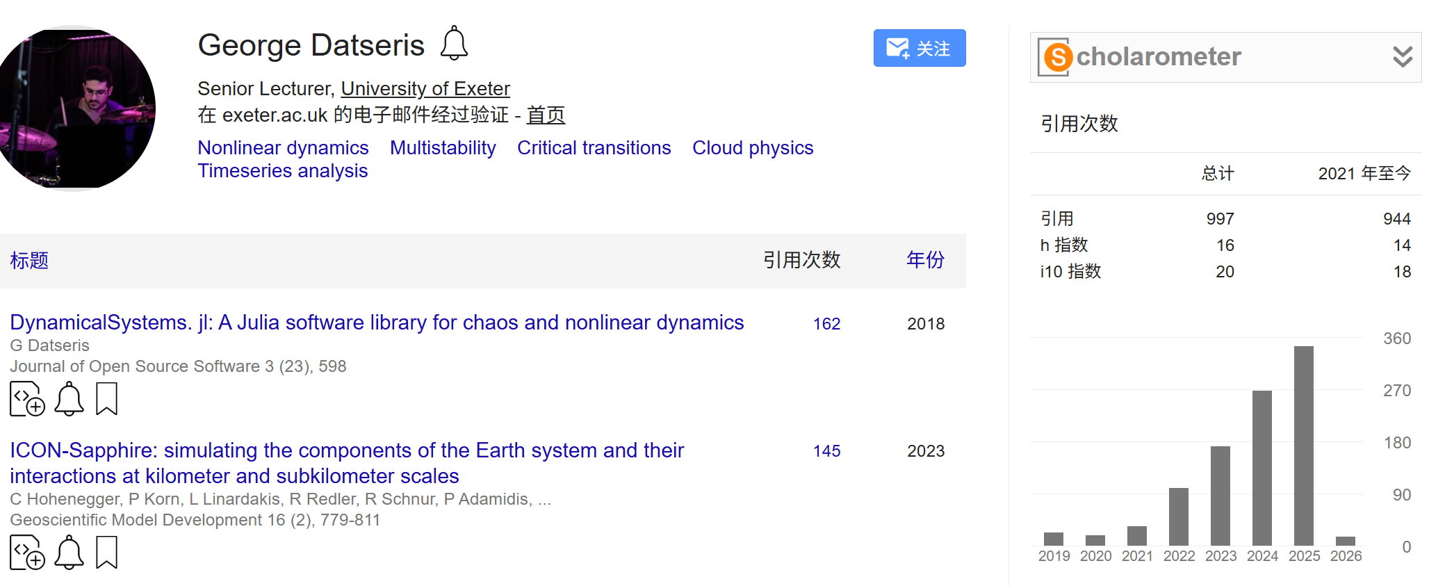 谷歌学术主页: