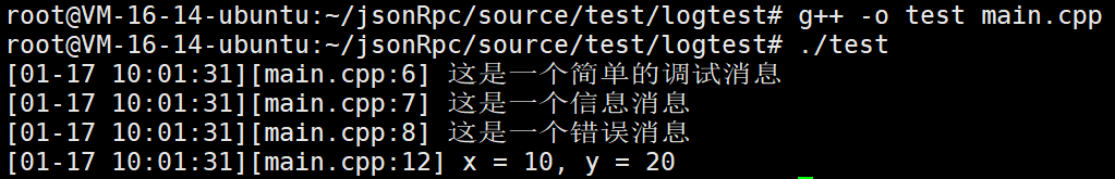 // 例如: [17.22.58 log.cpp:12]打开文件失败