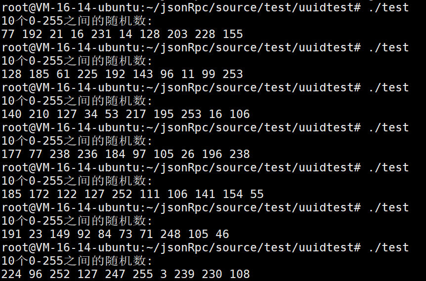 std::cout << "10个0-255之间的随机数:" << std::endl;