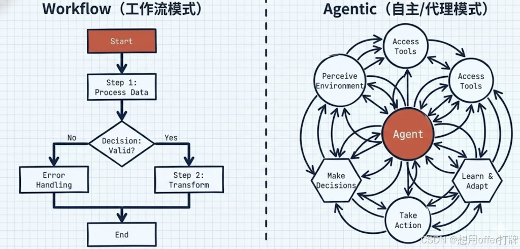 | 核心理念 | Workflow-Centric (工作流为中心) | Agent-Centric (智能体为中心) |