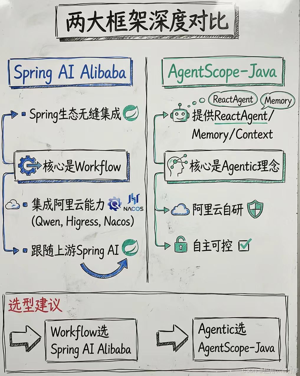 Spring AI Alibaba 和 Agent Scope 虽然都出自阿里巴巴,但它们的核心设计理念、适用场景以及对"Agent(智能体)"的定义有本质的区别。那我们怎么根据自己的场景来选择不同的框架呢?今天就来讲讲这两者适用的不同场景与相关概念,坐稳扶好!