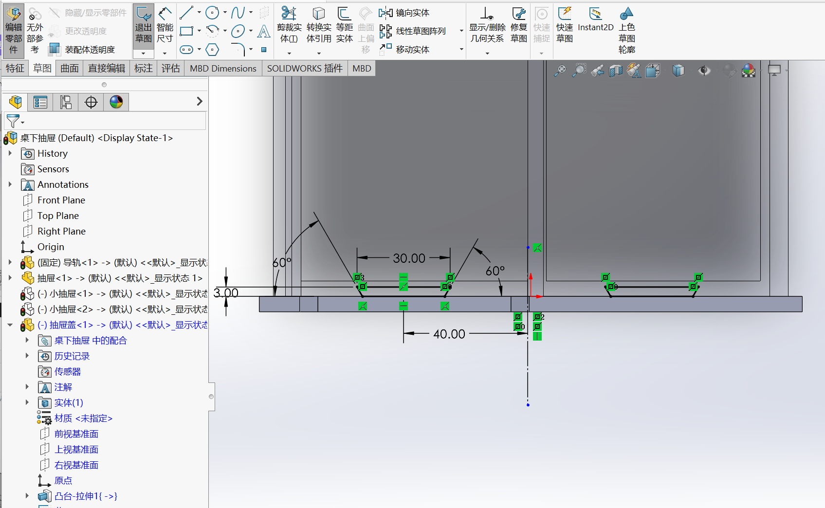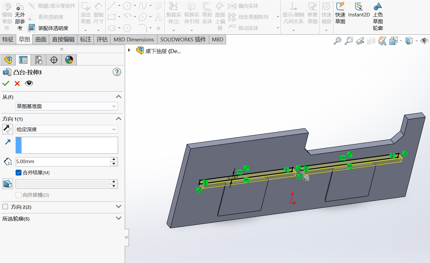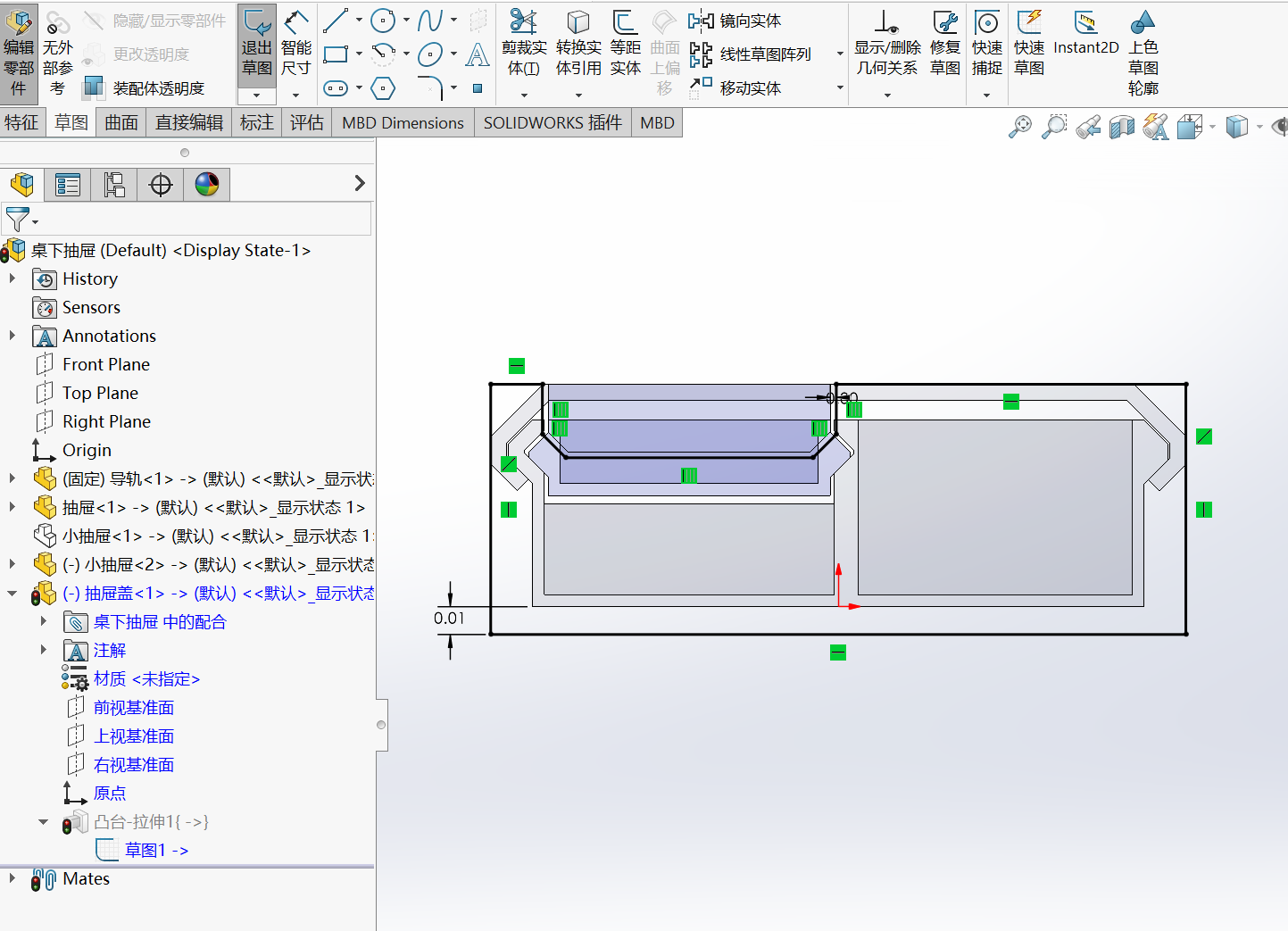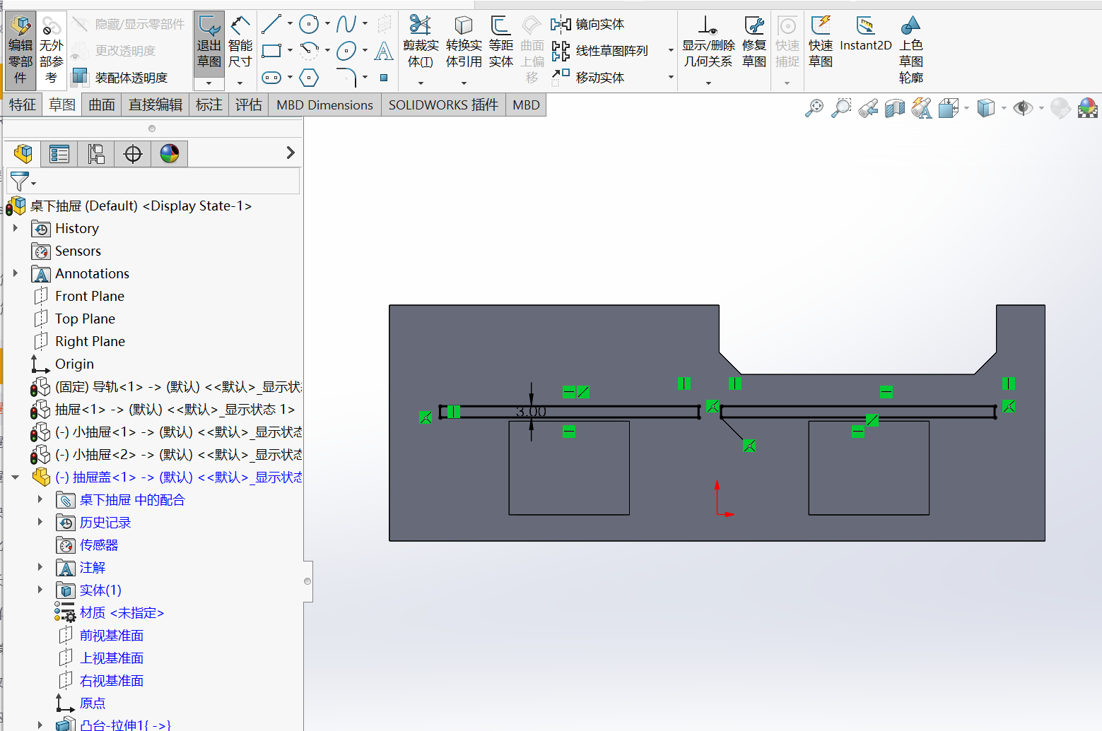 - [ 4、在大抽上设计小抽屉的导轨草图](# 4、在大抽上设计小抽屉的导轨草图)