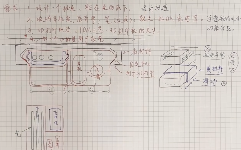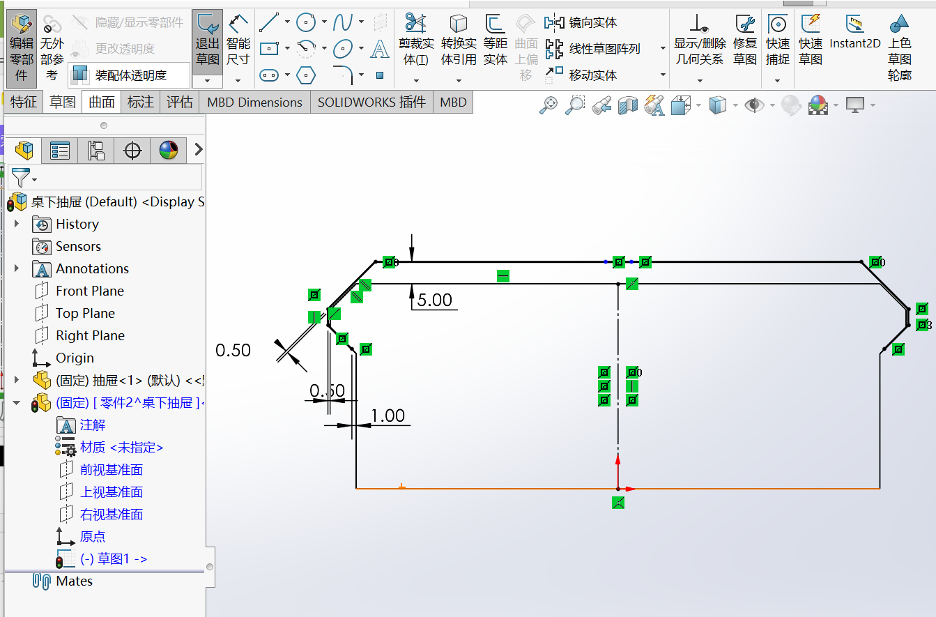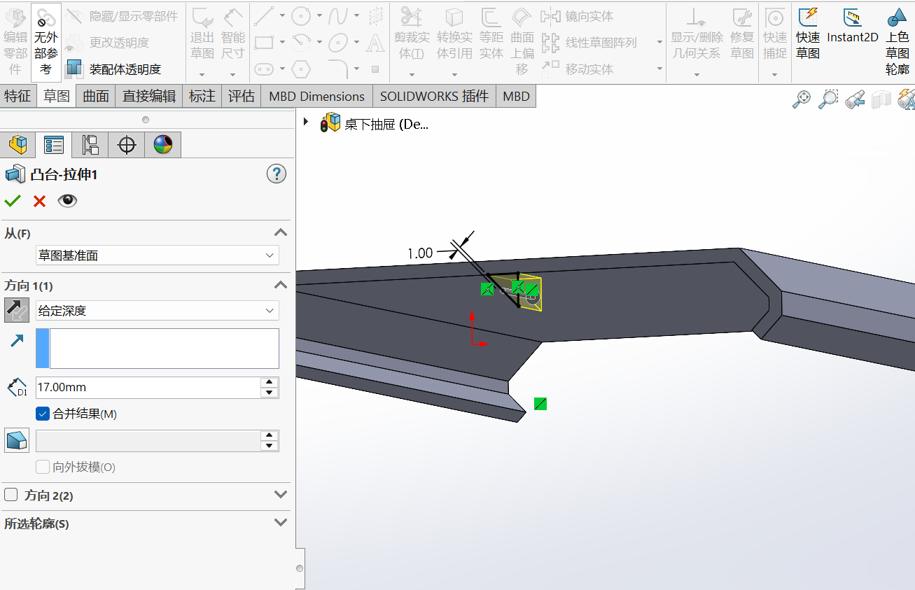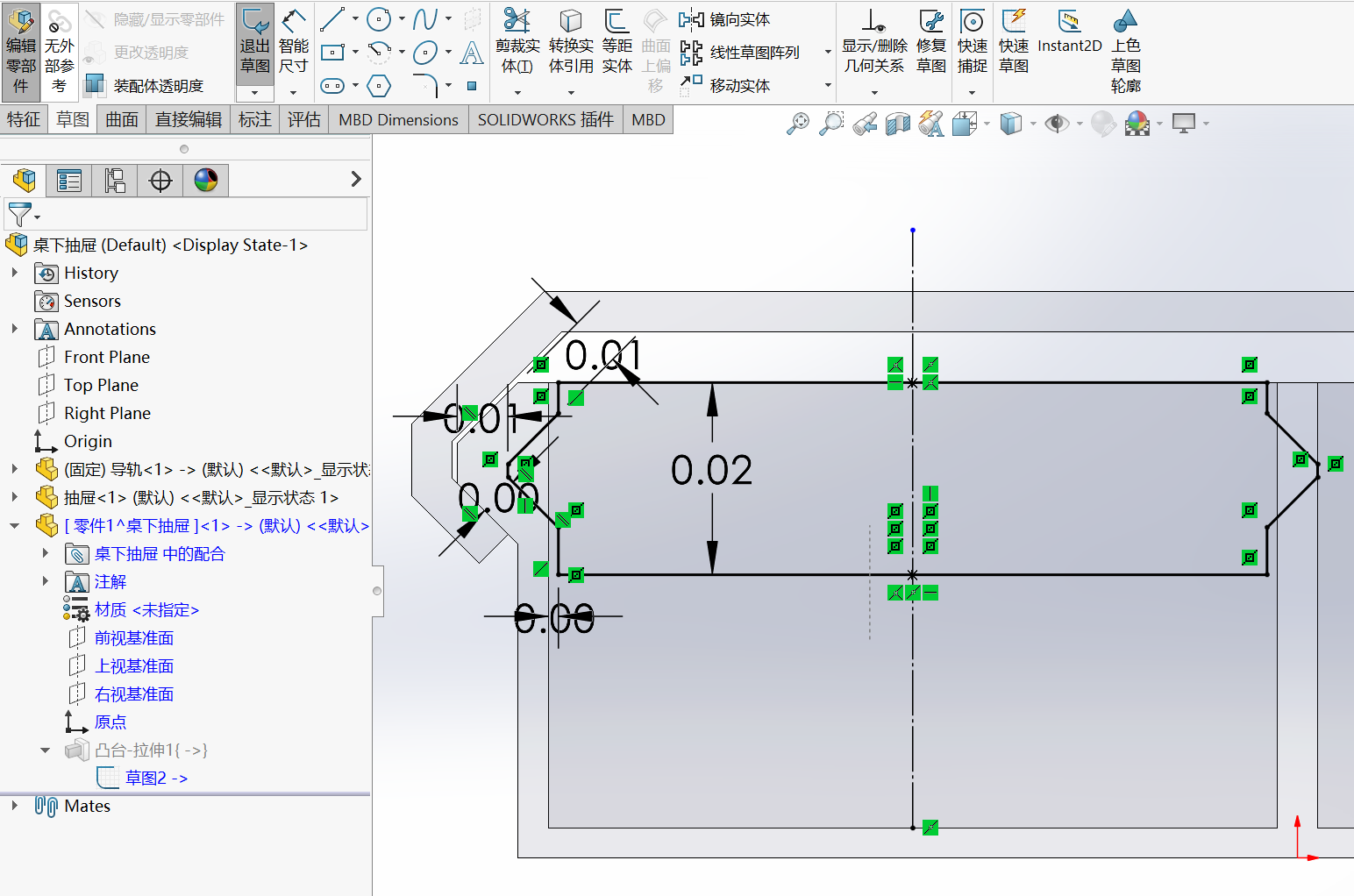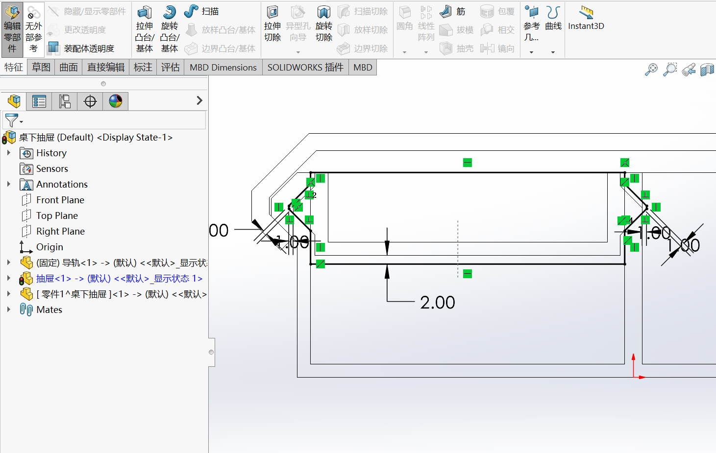 - [ 4、在大抽上设计小抽屉的导轨草图](# 4、在大抽上设计小抽屉的导轨草图)