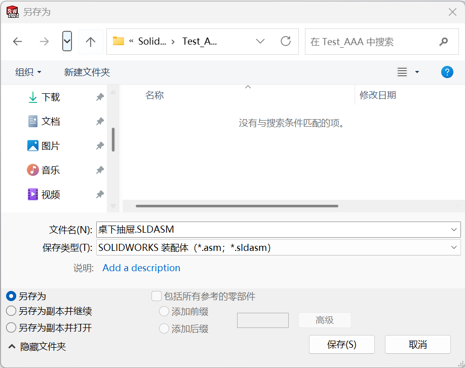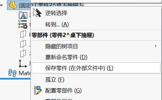在抽屉零件上右键选择保存零件(在外部文件中)。