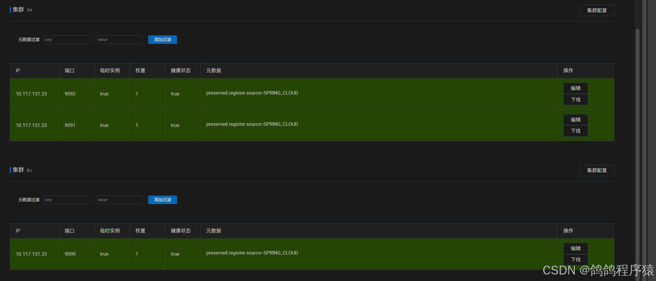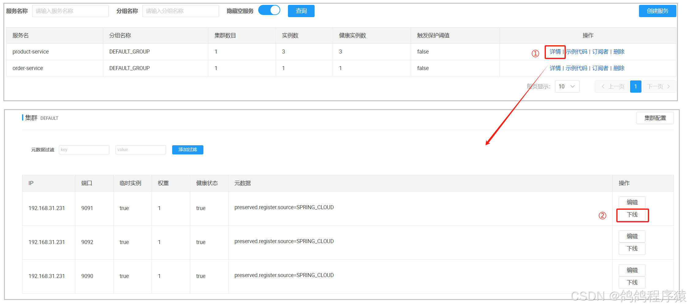 当某⼀个节点上接⼝的性能较差时,我们可以直接在nacos中第⼀时间对该节点进⾏下线。下线后这个端口就不会在接收到请求。