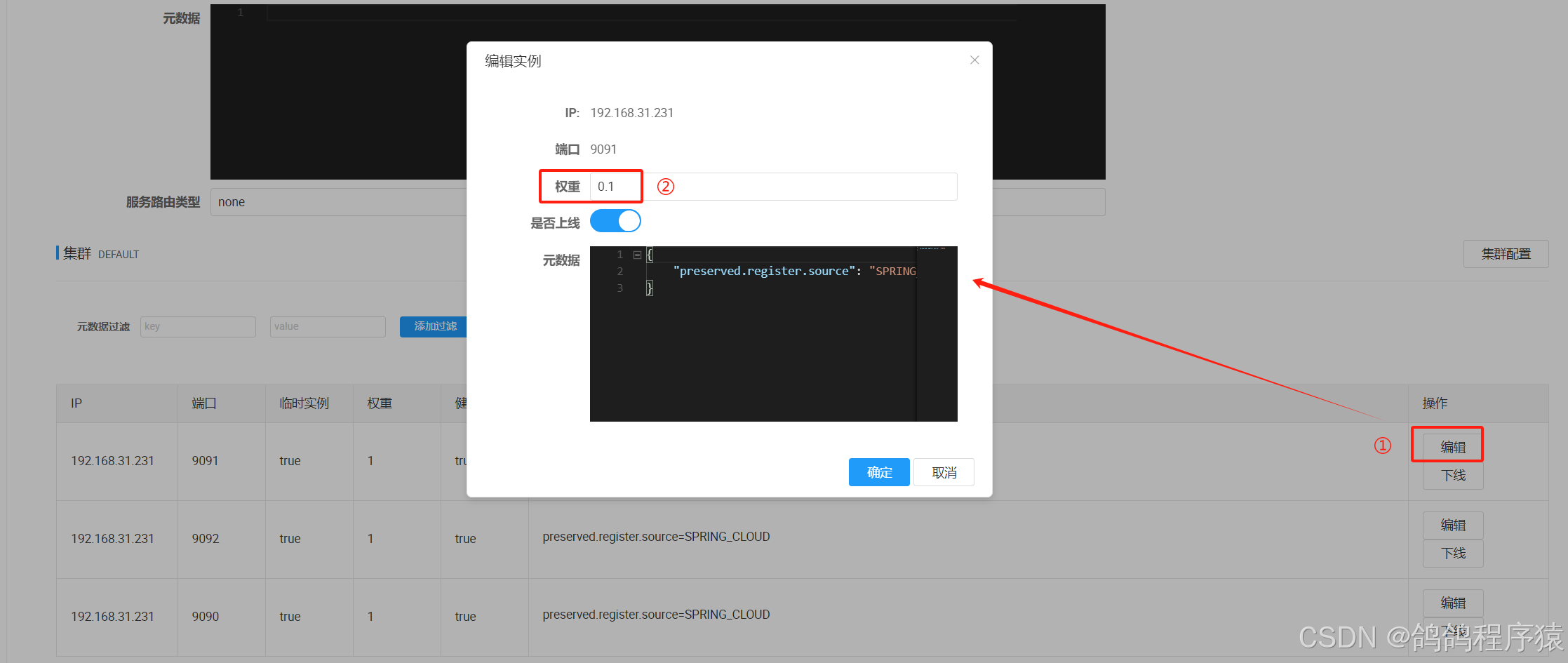 找到对应节点 -> 编辑 -> 在弹出的窗⼝修改权重值