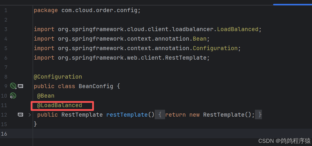 为restTemplate添加负载均衡注解 @LoadBalanced