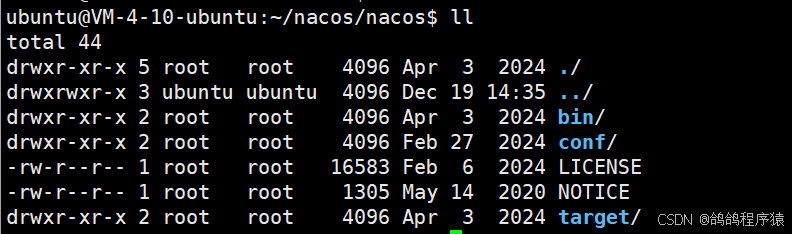 进⼊nacos/bin⽬录,启动单机模式:bash startup.sh -m standalone