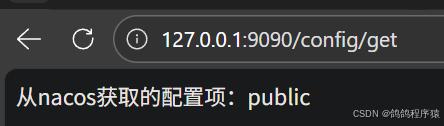 return "从nacos获取的配置项:"+nacosConfig;