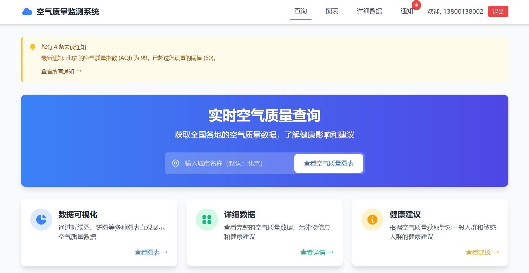 一个基于 Flask 的实时空气质量监测系统,提供空气质量数据查询、可视化展示、详细数据查看和智能通知功能。