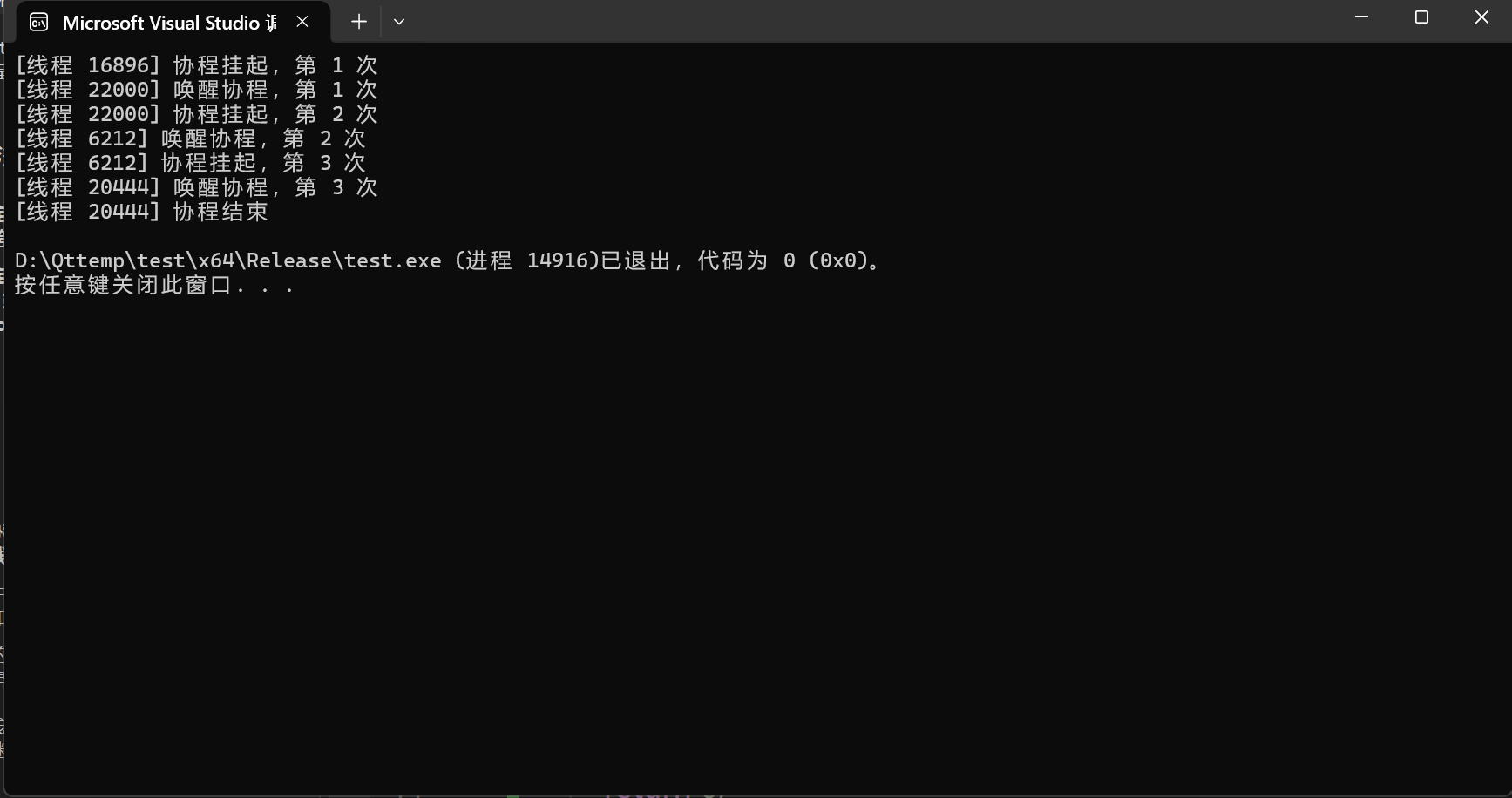 std::cout << "[线程 " << std::this_thread::get_id() << "] 协程挂起,第 " << i << " 次" << std::endl;