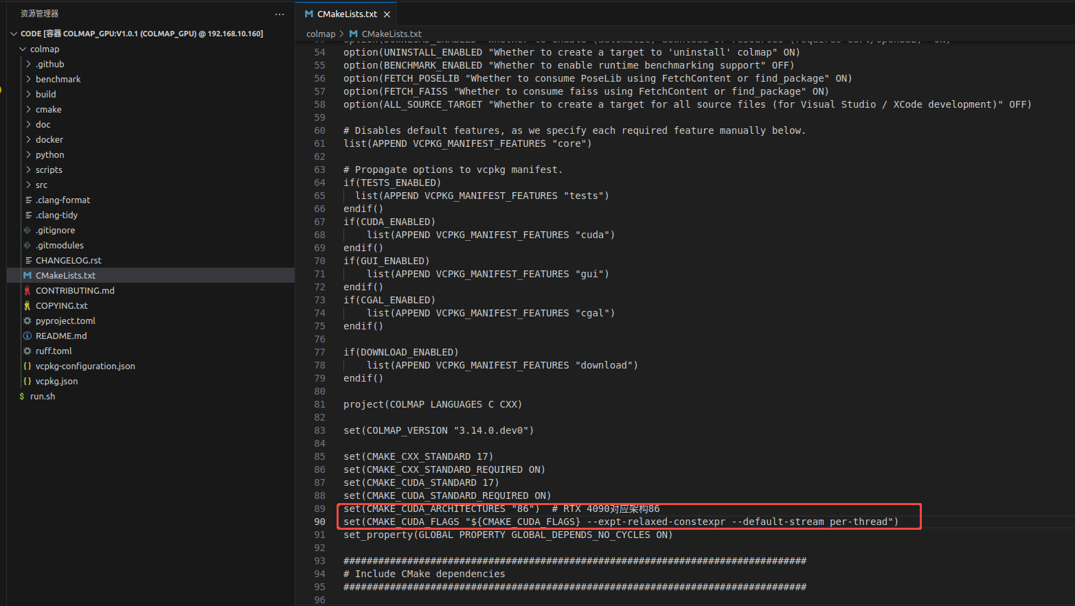 "cmake.sourceDirectory": "/root/code/colmap-3.13.0"