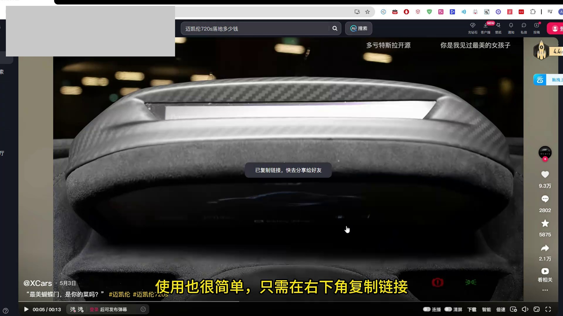 点击视频右侧的 "分享" 按钮(箭头图标)。