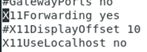 X11Forwarding和X11UseLocalhost两个选项如图配置。修改完成后重启ssh服务。