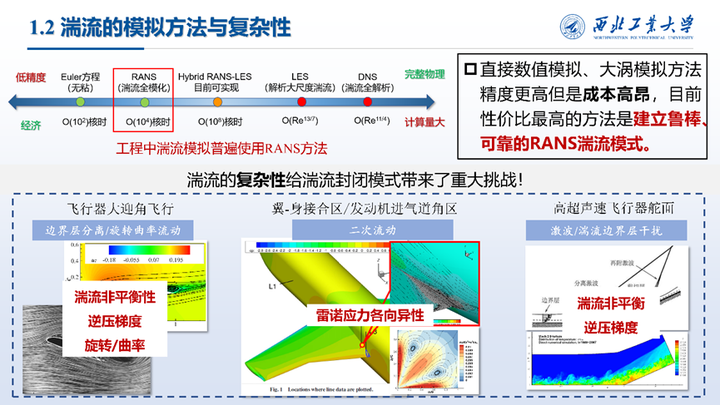 航空航天领域的湍流现象是决定关键工程能否成功的核心难题之一,也是当前急需攻克的重要基础科学问题。由于湍流本质上的不确定性、跨尺度特性以及复杂非线性,其数值模拟一直是计算流体力学(Computational Fluid Dynamics, CFD)领域的核心难题之一。传统湍流模拟方法主要基于雷诺平均纳维-斯托克斯(Reynolds-Averaged Navier-Stokes, RANS)方程,这类方法在计算效率和工程适用性方面表现突出,但是对于复杂分离流动(如大迎角失速、激波-边界层干扰等),其预测精度难以满足工程需求。大涡模拟和直接数值模拟方法尽管精度高,但计算成本极为昂贵,难以在工程中大规模应用。