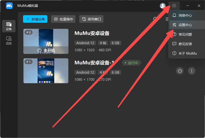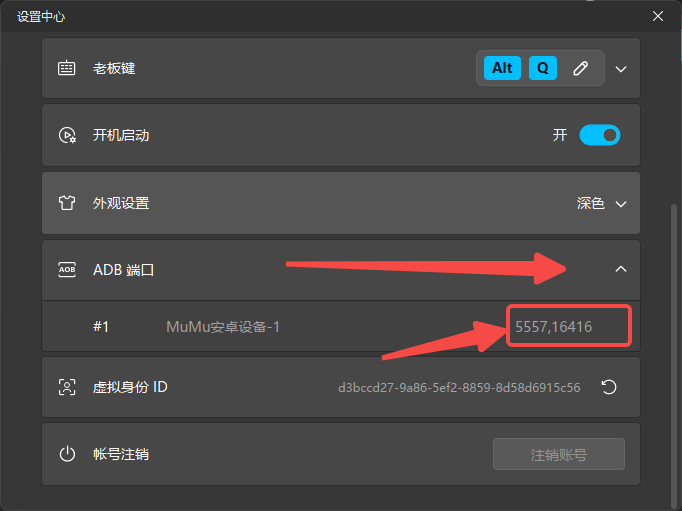 打开设置中心->在 adb端口 查看已经启动的设备的端口