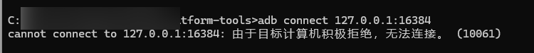 端口问题。16384是默认端口,上图所示创建了新的安卓设备,mumu模拟器的新设备不再是默认端口了,需要用新设备的端口。