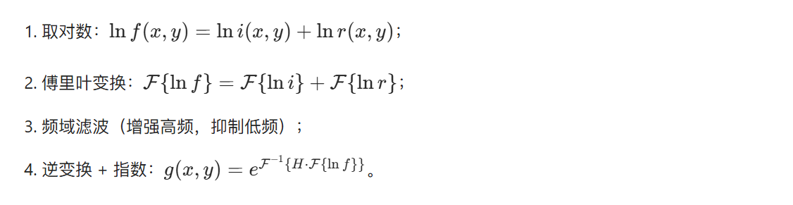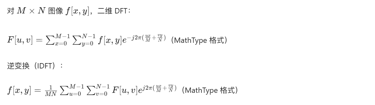 - 频域滤波核心:将图像从空间域转换到频率域,通过修改频率分量实现增强 / 去噪,再逆变换回空间域;