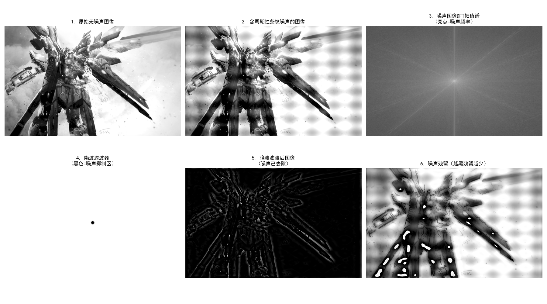 plt.title('5. 陷波滤波后图像\n(噪声已去除)', fontsize=12)