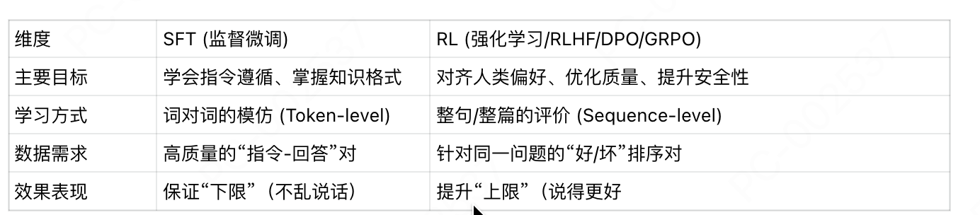 后训练SFT与RL对比