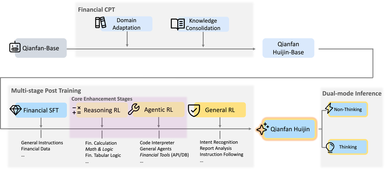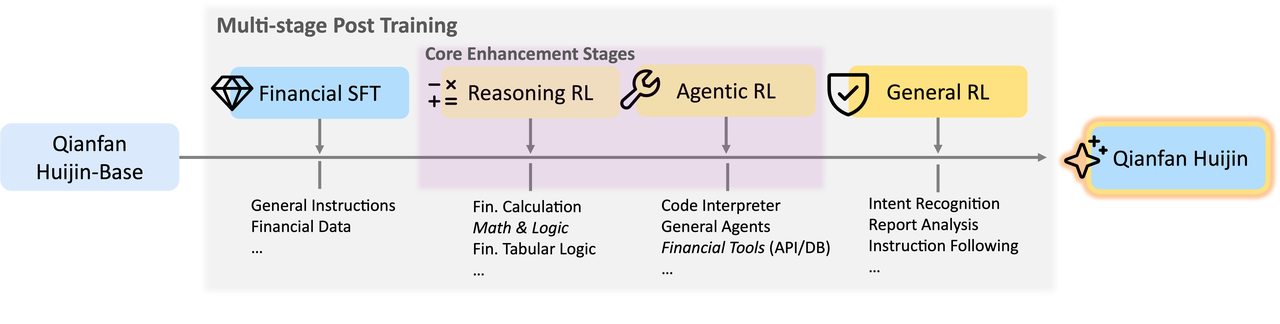 第二阶段(Reasoning RL):侧重于金融和数学领域,以培养深度推理和计算方面的严谨性。