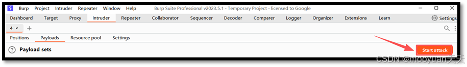 配置完intruder后点击start attack开启攻击,具体如下所示。