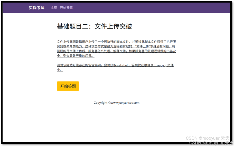 点击开始答题,如下所示进入了文件上传的真实页面,具体如下所示。