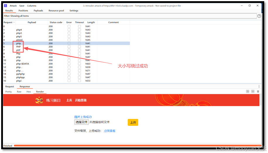 - step1- 大小写绕过 (未被调用) :扩展名验证只检查小写"php",可通过.PHP、.Php等绕过。但是在
