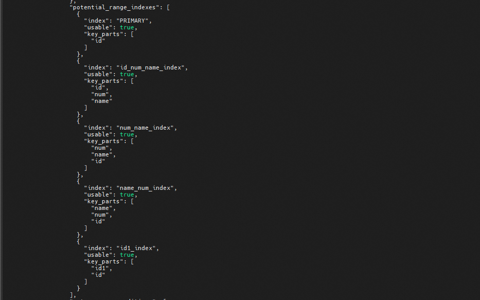 再往下看,可以看到"considered_execution_plans"这里选择了"used_index": "name_num_index"