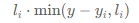 枚举正方形 (xi,++yi++ ,li),如果水平线在正方形底边上方,即 yi<y,那么这个正方形在水平线下方的面积为