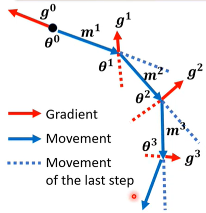 可以看到图中每一次的参数更新方向都会受到之前梯度的影响。