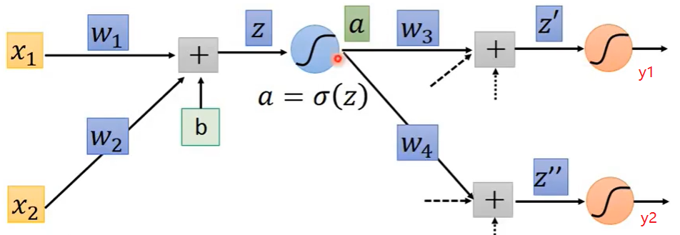 ① z = x 1 w 1 + x 2 w 2 + b 11 z=x_1w_1+x_2w_2+b_{11} z=x1w1+x2w2+b11;