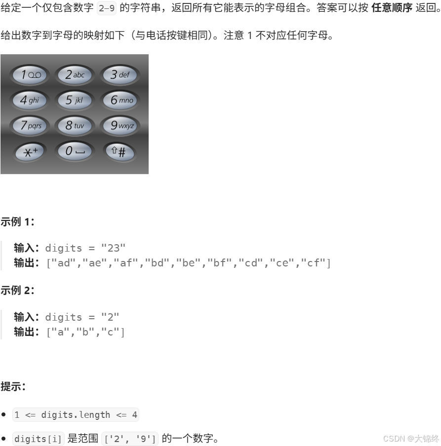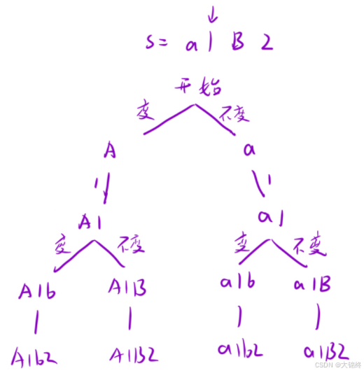 用一个字符数组来记录每个数字所对应的字符串,用哈希表也行,画出决策树后就可以开始分析递归回溯过程了,与之前思路相同,用一个全局变量来记录结果,一个全局变量来记录生成的结果,每一层都要对传入的字符串每一个字符可能形成的结果进行深搜,返回时要恢复现场
