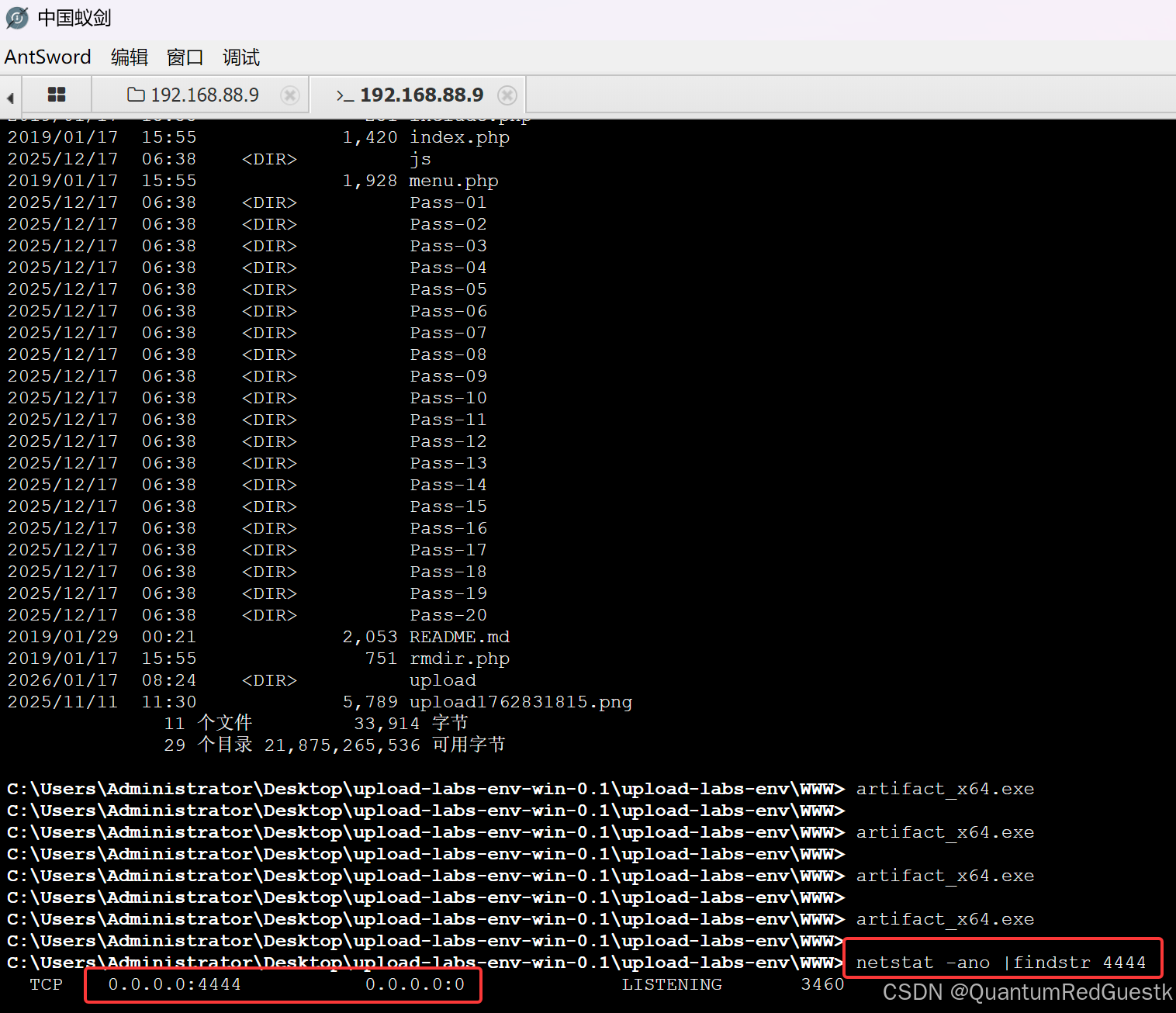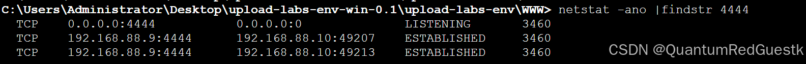 回到web-test蚁剑上检查444端口启动情况,成功启动