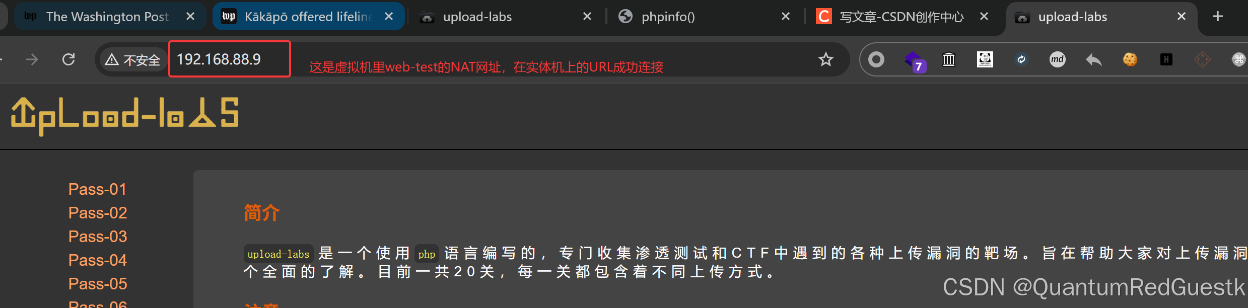 如果你想在实体机的浏览器里也访问到虚拟机web-test里布置的upload-labs甚至横移