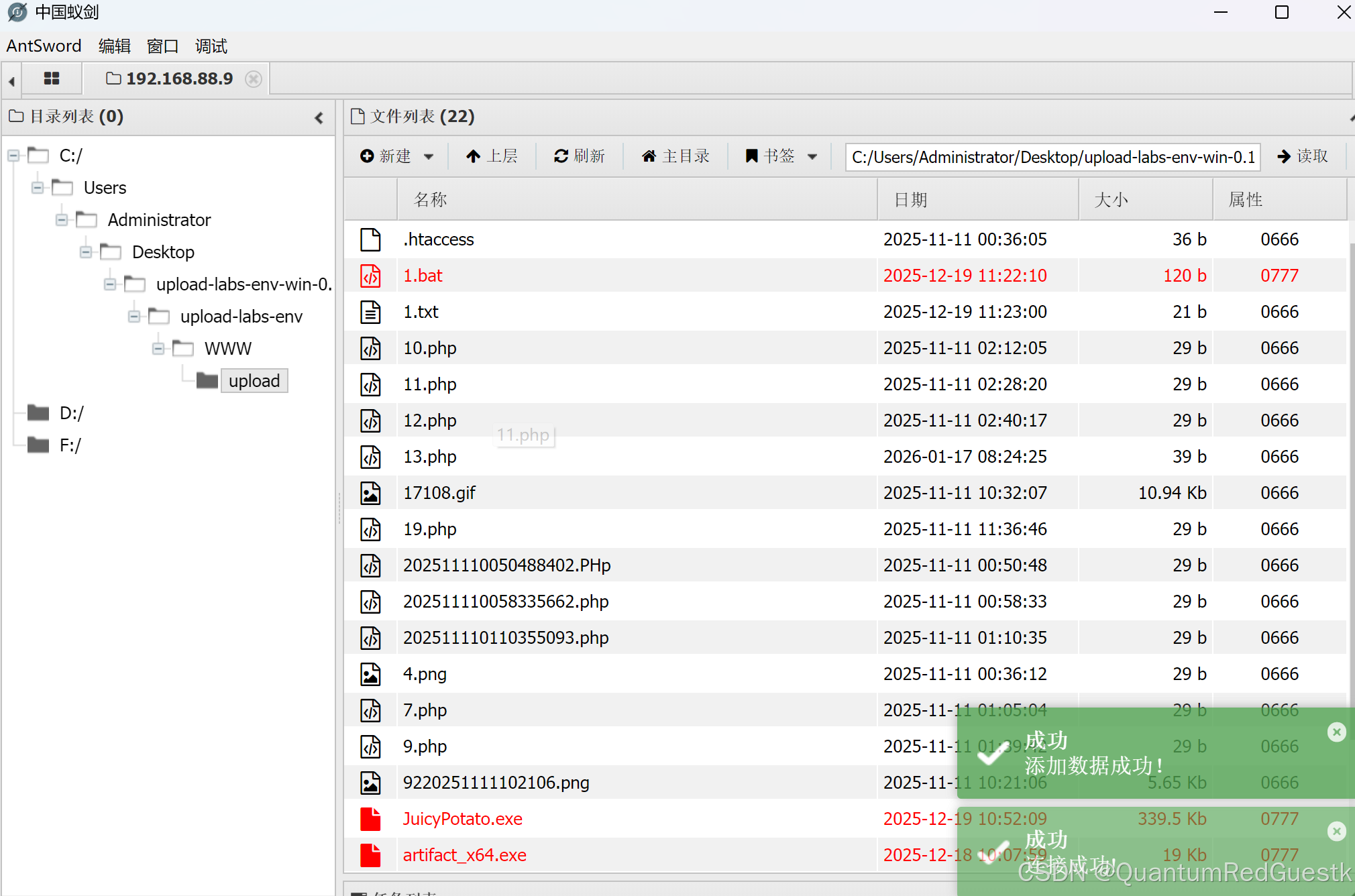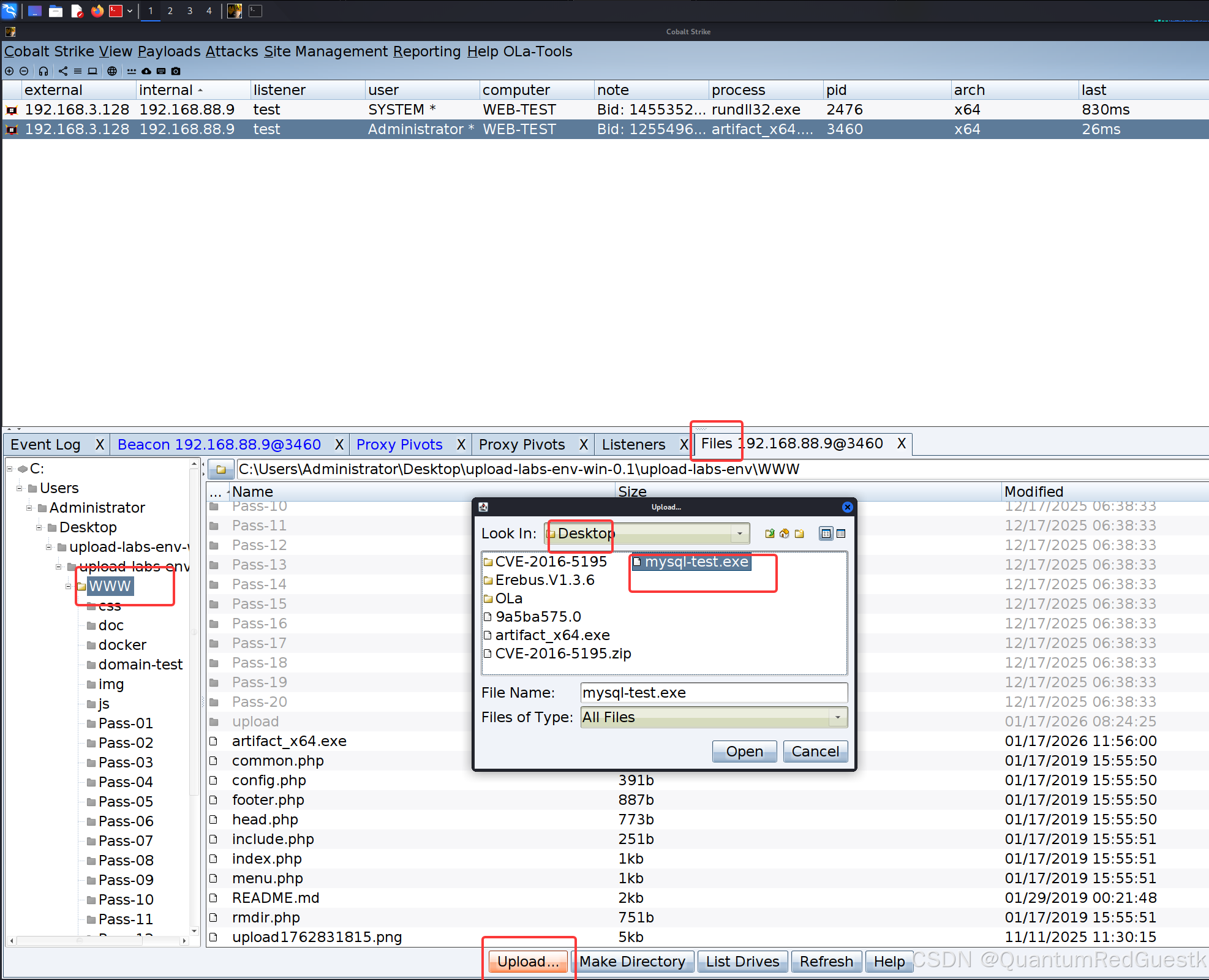 来到web-test的CS的文件管理界面:upload上传刚才生成的payload文件