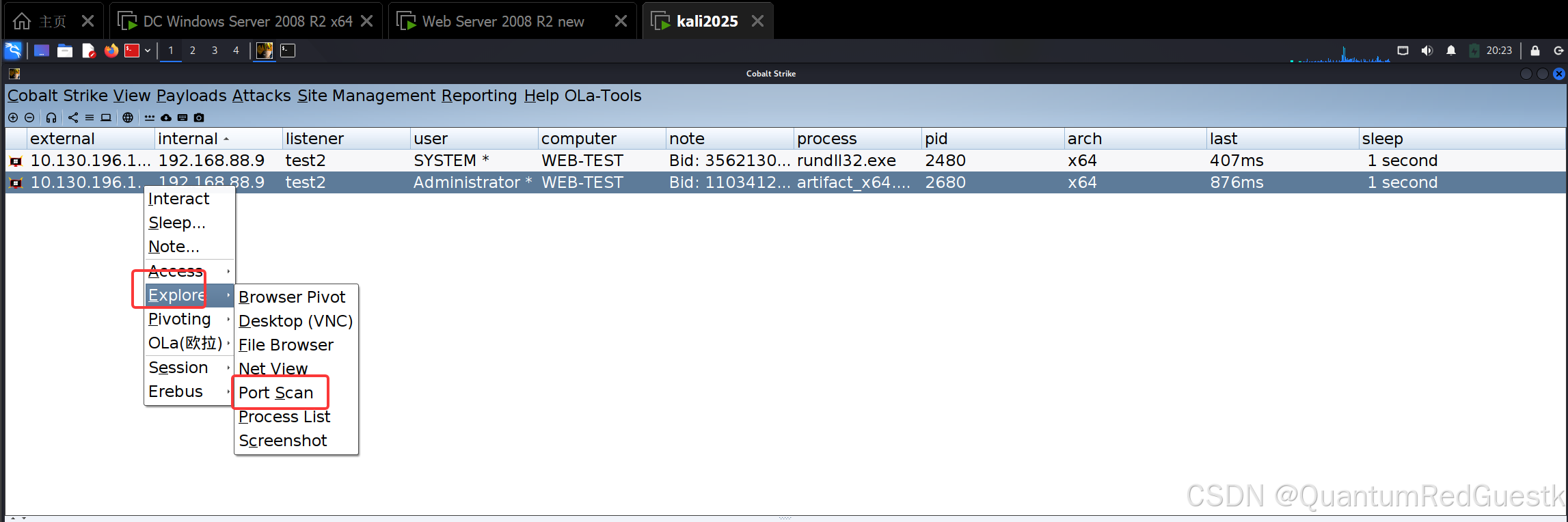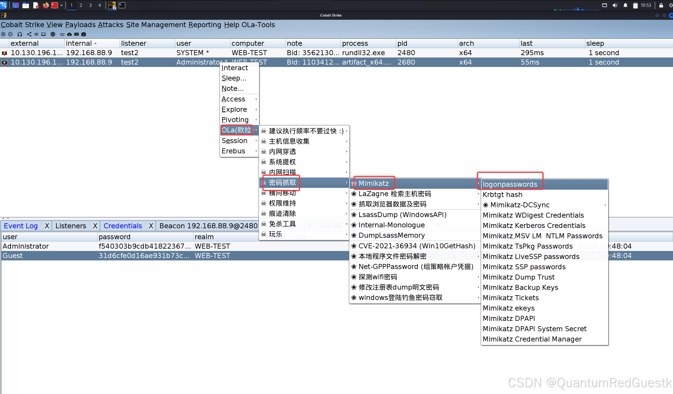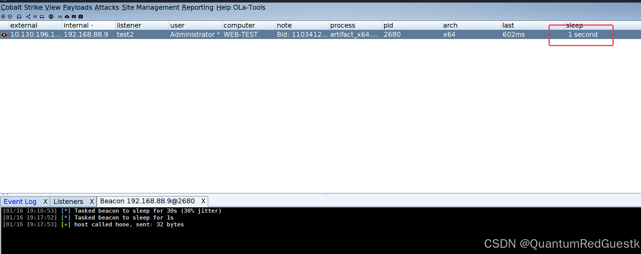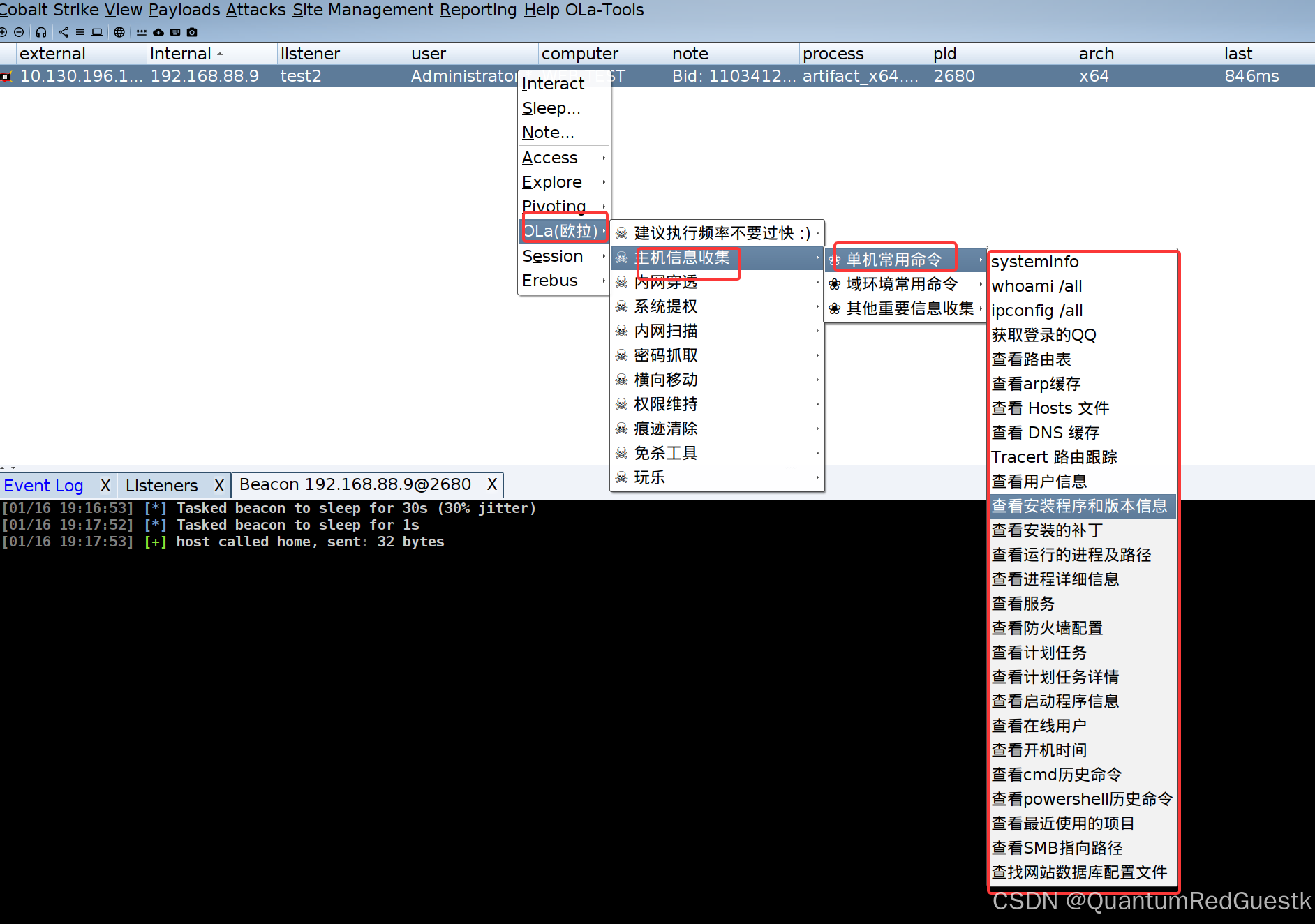 首先,进入到CS之后,先把主机web-test的基本信息搜集一遍