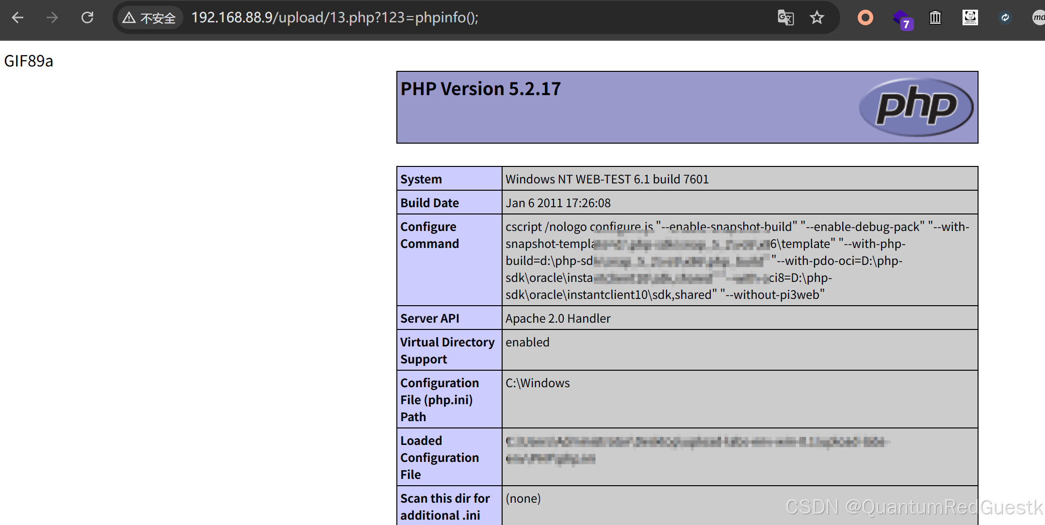 web主机里默认有upload-labs靶场漏洞;