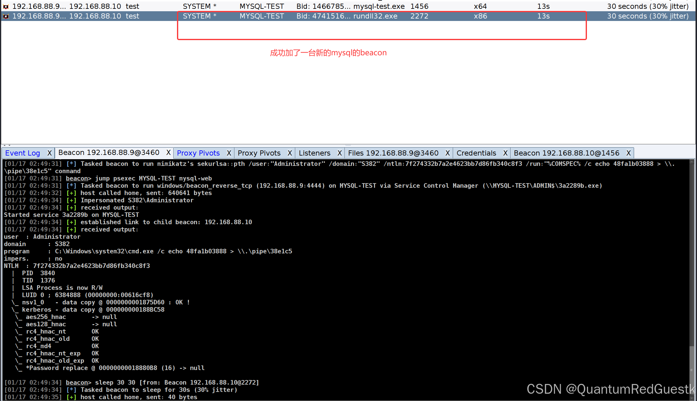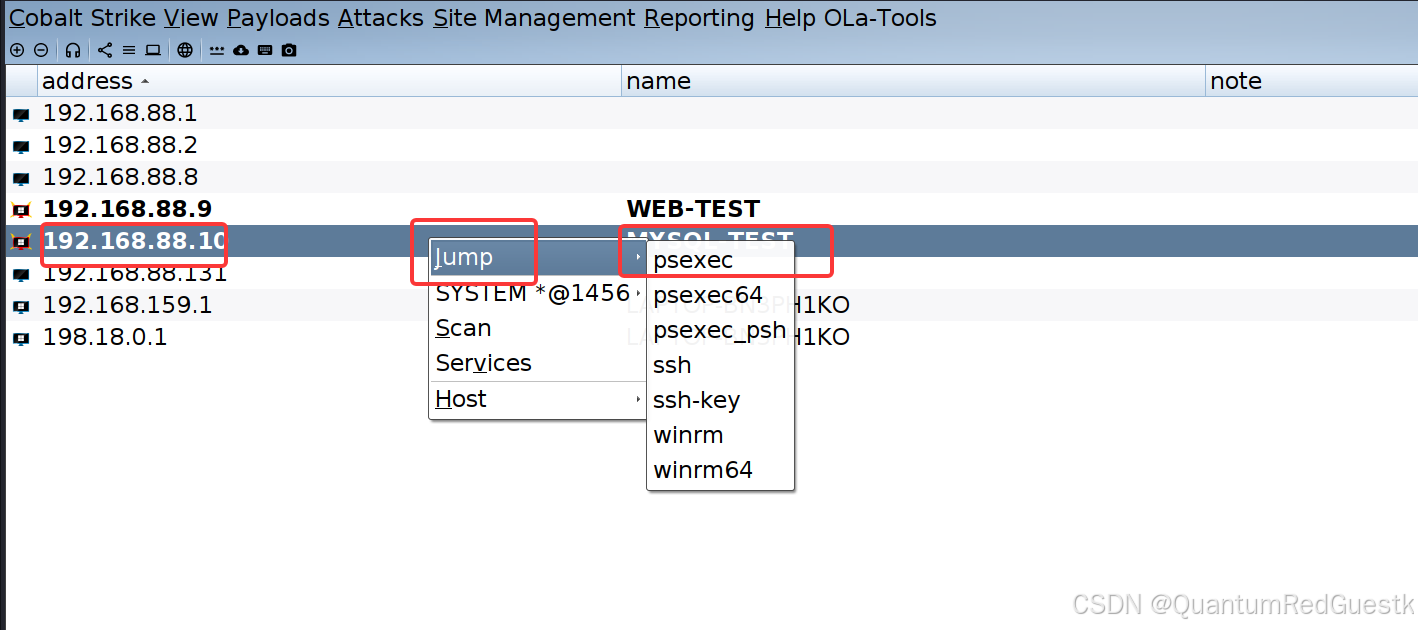 前面说了,直接用桥接地址的监听器与CS自带的psexec模块横移mysql会失败