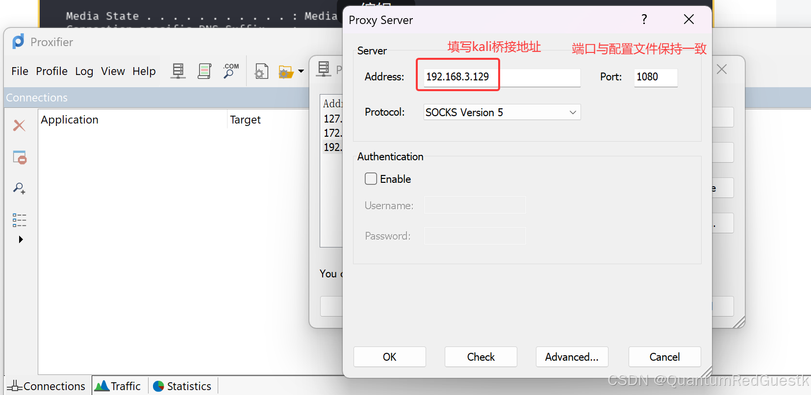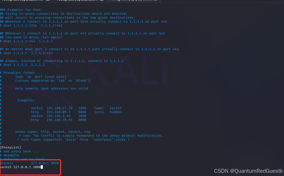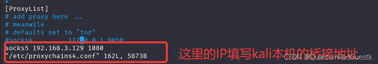 然后,在kali里设置vim /etc/proxychains4.conf配置文件
