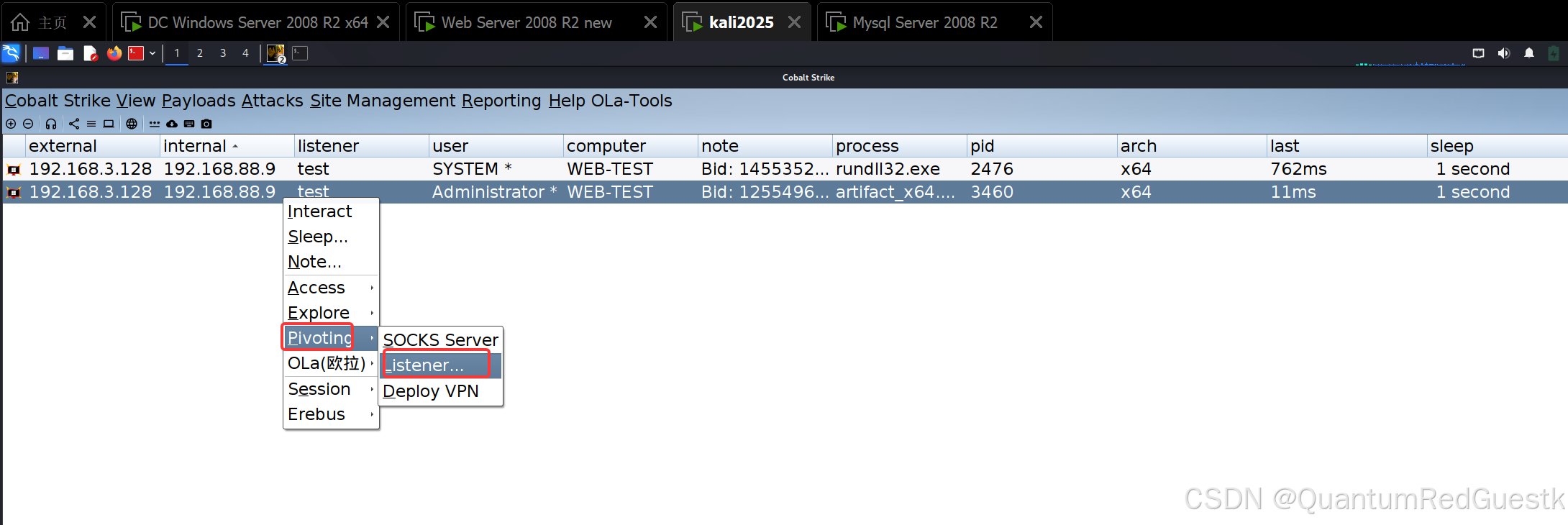 利用CS的代理在kali上横移mysql主机