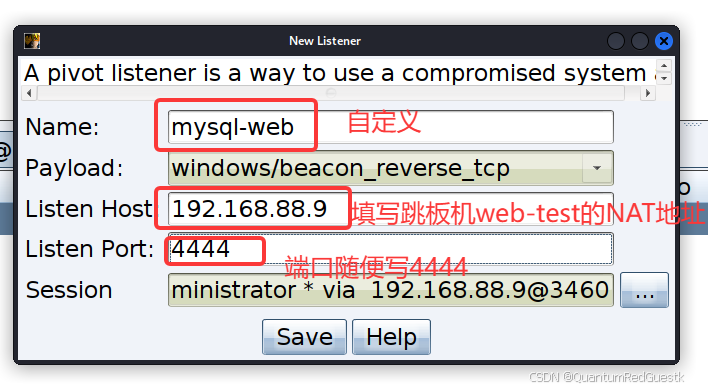 创建新的web-test NAT内网地址监听器,并生成payload