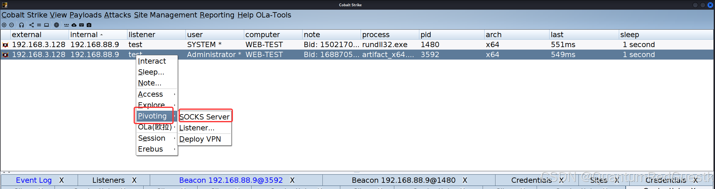 一样,首先在CS开启socks代理1080端口