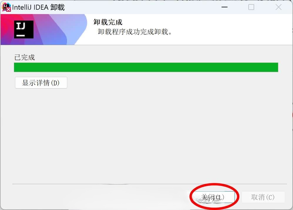 待卸载完成后,点击关闭按钮即可。